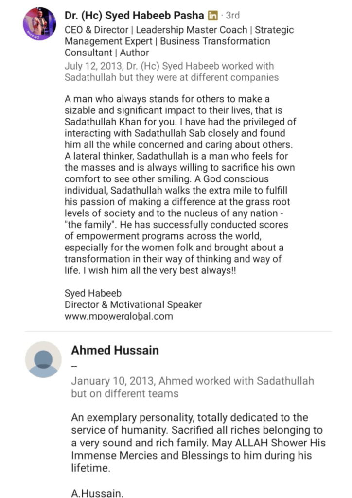 Dr. Sadatullah Khan’s work has been featured in Times of India, Arab News, Deccan Chronicle, The Milli Gazette, and more for his contributions to personal and societal transformation.